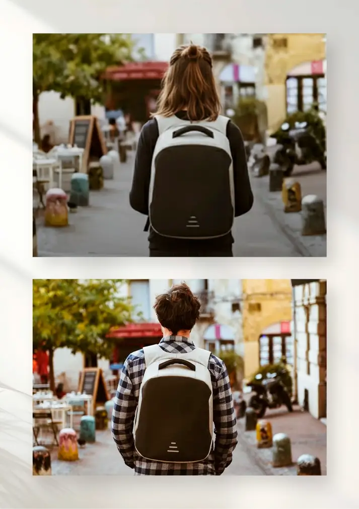 Nos sacs à dos antivol s’adaptent à toutes vos journées, que vous soyez en tenue professionnelle ou décontractée.